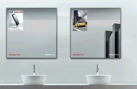 鏡面燈箱對于尺寸較大的通常是在鏡面上一角呈現圖像,對于尺寸較小的完全是畫面和鏡子的交換,人走近時呈現鏡子,離開時呈現畫面。下面介紹小尺寸鏡面燈箱: